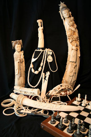 - Statues, trinkets, bracelets, pendants, paper-cutters, jewellery boxes, sculptures and chess games of elephant ivory