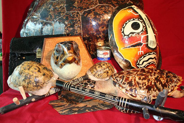 - Naturalized turtles; shells used as musical instruments (guitar's resonance chamber); tortoiseshell barrettes, combs and eyeglass frames
